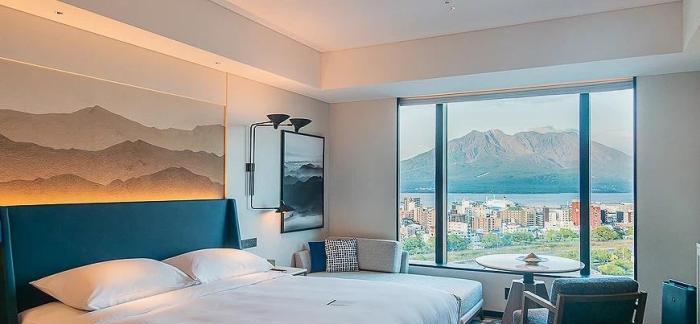 「喜來登鹿兒島飯店」以鹿兒島開港歷史為靈感,整體設計融合了鹿兒島傳統文化與西方美學,許多角落都以薩摩燒、薩摩玻璃、帖佐人偶等文物點綴,增添藝術質感。飯店有5間不同風格的餐廳、228間房間近10種房型可供選擇,其中位處飯店高樓層、以「櫻島」命名的房間,都是從房內便可眺望櫻島美景的特別房型,尤其傍晚時分、夕陽餘光灑在櫻島上的絢麗景象,更令人印象深刻!早餐可在4樓餐廳「Daily Social」享用鹿兒島名物「薩摩炸魚餅」、廚師現做歐姆蛋等豐盛自助餐。記者也推薦大家在入住期間,體驗從地下約1,100公尺處擷取的天然溫泉,泉池溫度維持在約40度,沒有過重硫磺味,十分舒適,時間不夠也可以泡泡足湯唷。