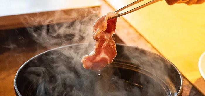 黑豬肉放入鐵鍋內涮上幾秒就可以享用