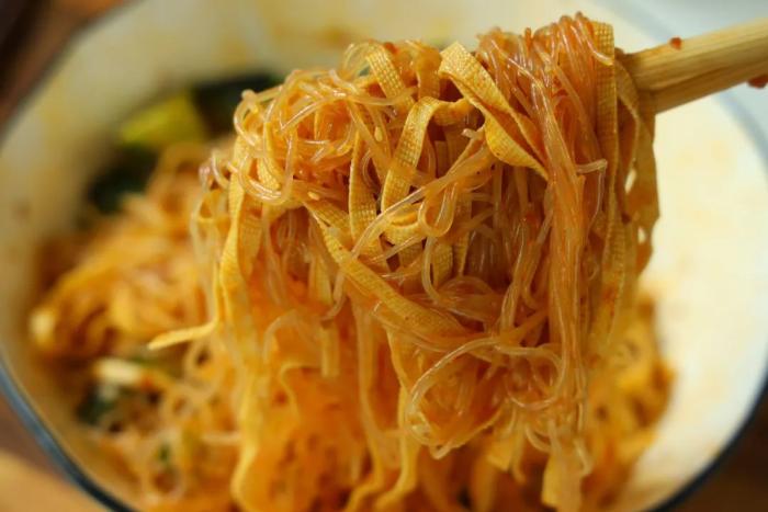 要說有多省事?您就記住"切一切、拌一拌"六字真言。千張焯水去豆腥,黃瓜拍兩下更入味,粉絲泡軟過涼水,再把獨家秘製醬汁往上一澆。重點誇誇這個不辣也超香的靈魂醬汁,蒜末被熱油激得焦香,混著甜椒粉的醇厚,白芝麻在齒間咯吱爆香,愣是把素菜拌出葷菜的滿足感!