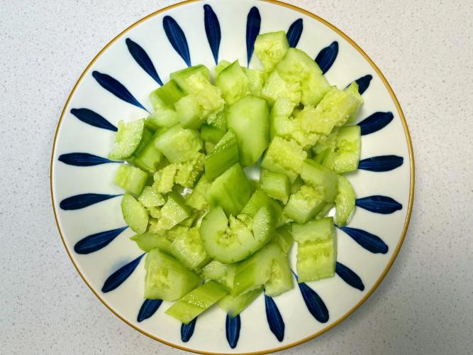 2、黃瓜下鍋別超過1分鐘,保持脆勁兒才爽口。