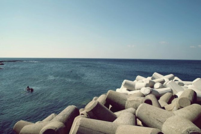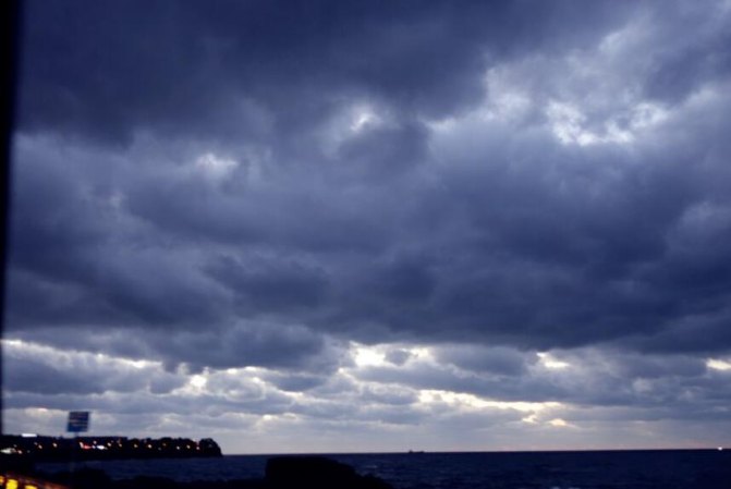 在酒店門口海邊上,用汽車擋風玻璃上端的遮陽色差隨便這麼一拍,回頭發現有點美國大片的影像效果。。。